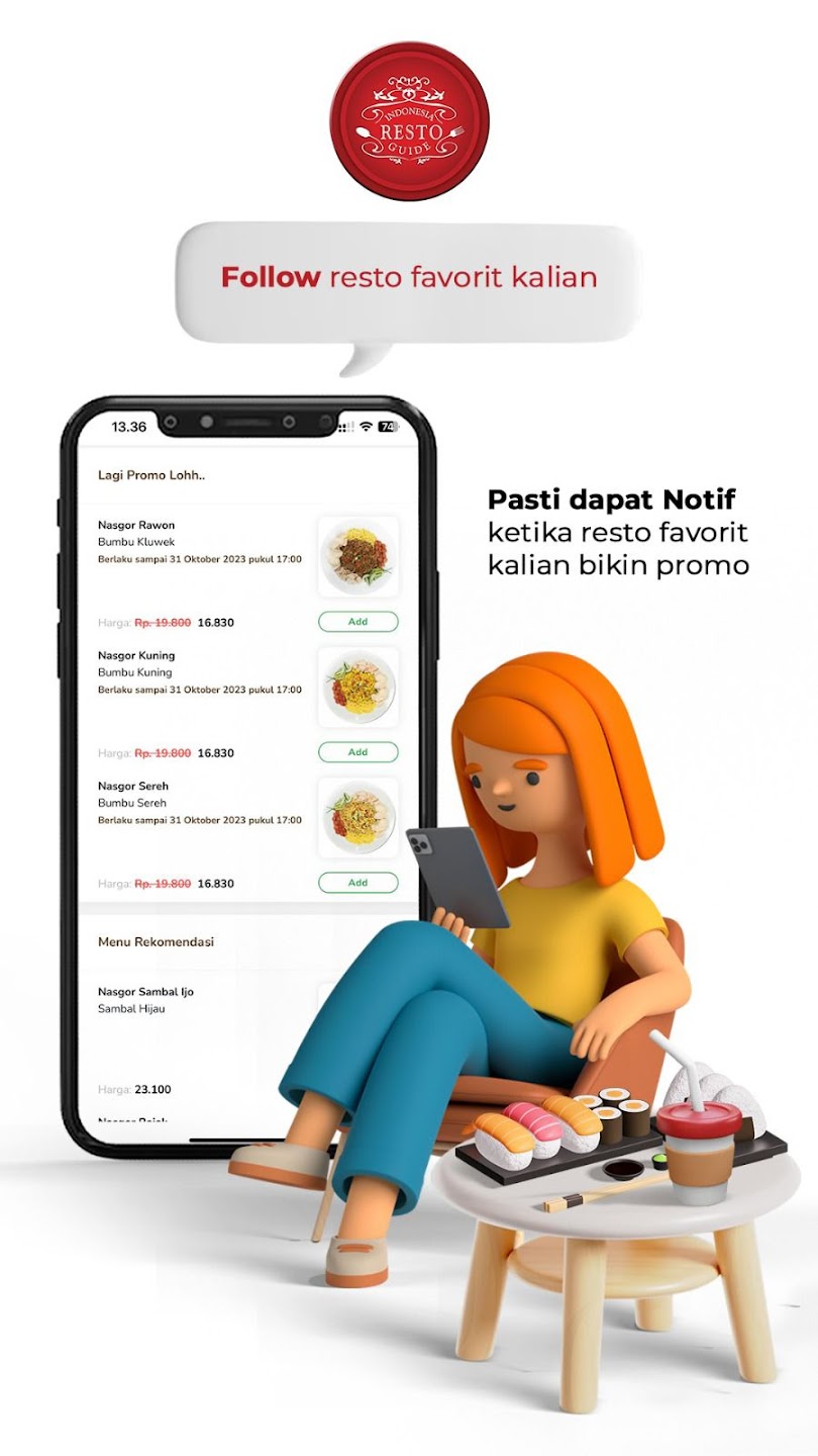 Indonesia Resto Guide lets users order food via QR code for dine-in or takeaway, streamlining payments and reducing wait times. Restaurants benefit from fewer errors and POS integration.