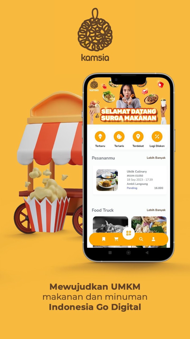 Kamsia helps street vendors and small food businesses in Indonesia sell online, offering a platform for ordering and payments.